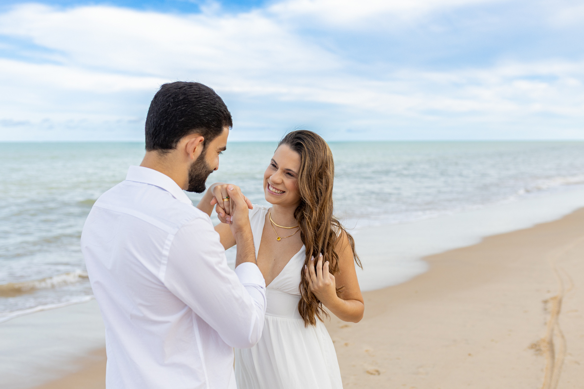 Este ensaio foi a personificação da leveza e da conexão, com cada clique revelando a cumplicidade e o amor que transborda entre eles. Em um cenário de praia deslumbrante, brindamos a essa nova fase, eternizando sorrisos e a promessa de um futuro a dois.